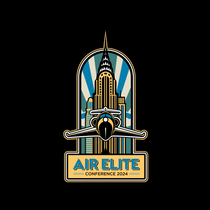 BrandExtract explored various NYC themes for the Air Elite conference but ultimately chose Art Deco, creating a clean and structured design. This successful mark was versatile for various marketing materials and generated high demand for merchandise. The positive reception led to an expanded campaign for the following year.