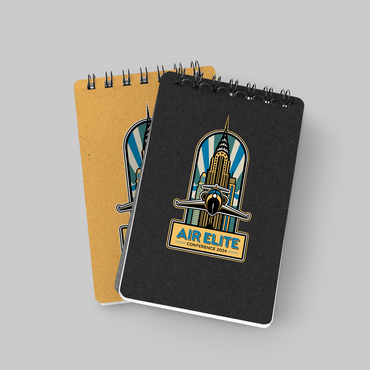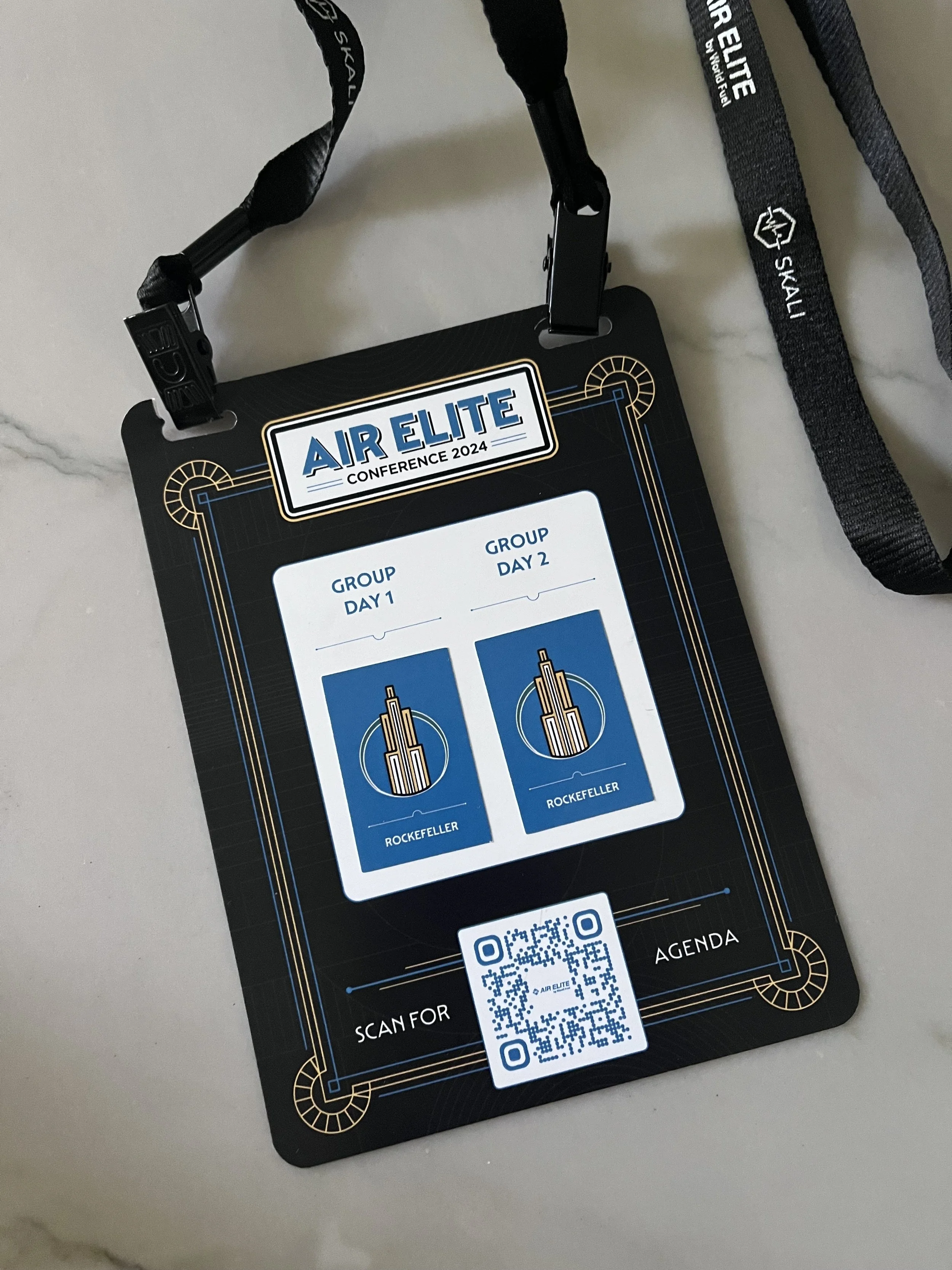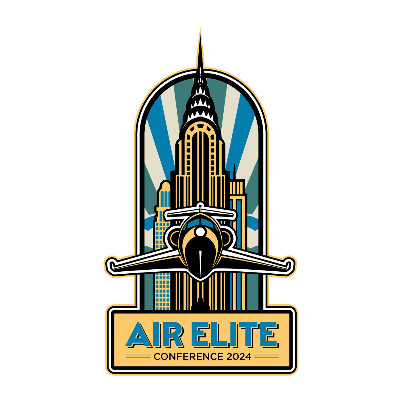 BrandExtract explored various NYC themes for the Air Elite conference but ultimately chose Art Deco, creating a clean and structured design. This successful mark was versatile for various marketing materials and generated high demand for merchandise. The positive reception led to an expanded campaign for the following year.