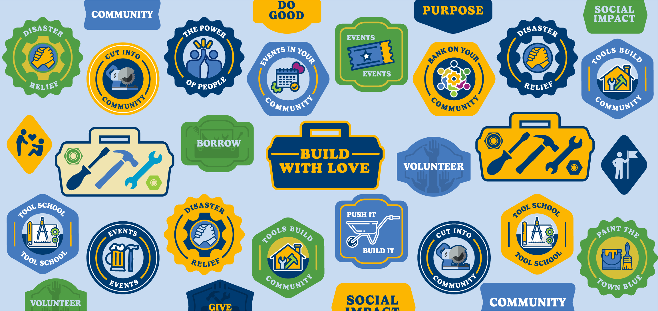Our primary aim with the website was to capture and convey the emotional experience of volunteering at the tool bank - to depict the sense of fulfillment that comes from doing good in one’s community. To achieve this, our strategy was to create a visual narrative using only amateur photographs. We wanted to ensure these diverse images formed a unified and cohesive story. To connect them seamlessly, we incorporated design elements reminiscent of National Parks and Boy Scout merit badges. This approach not only helped to promote the values of community and volunteerism but also added a nostalgic and familiar feel that resonates with visitors.