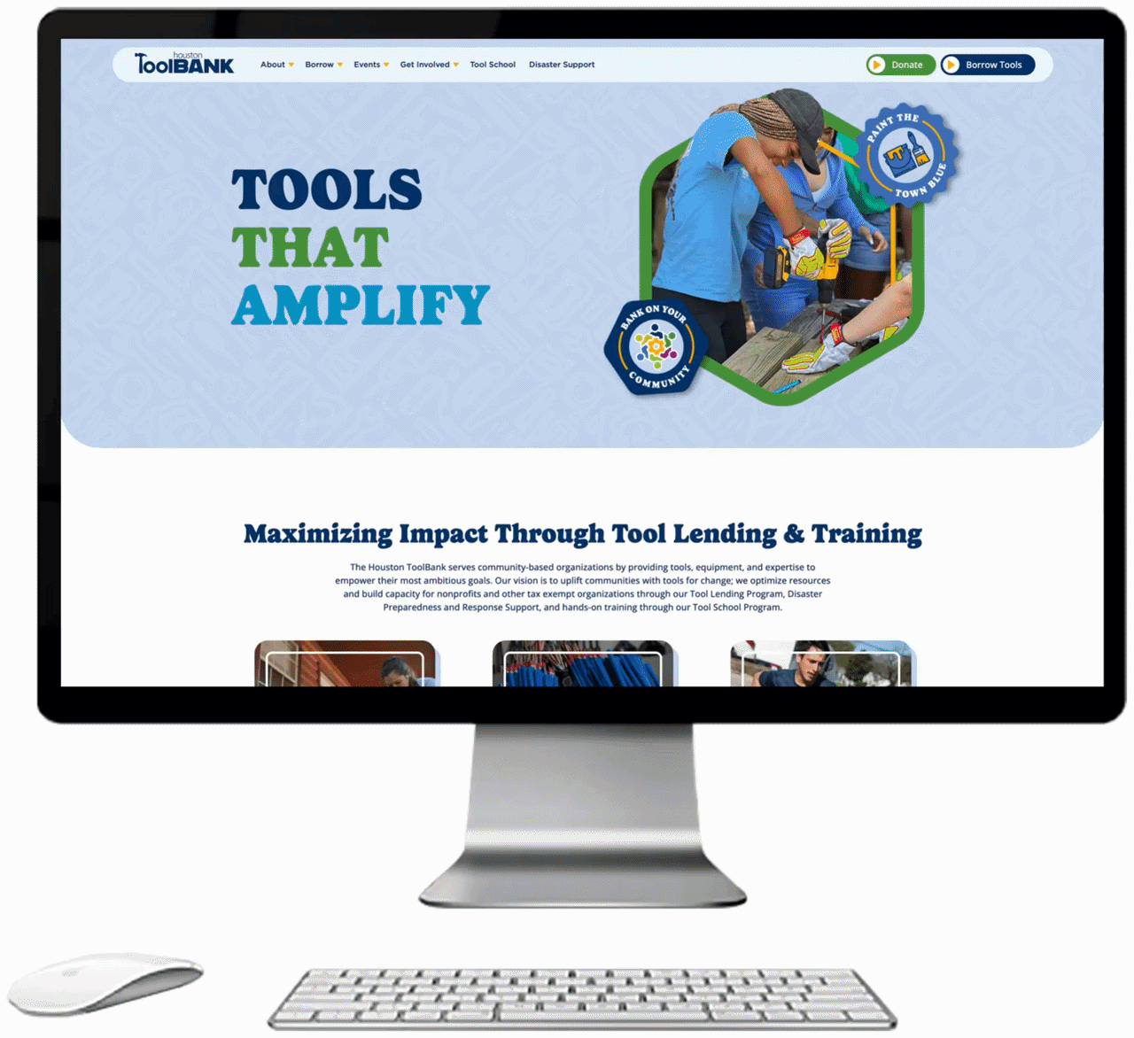 The Houston ToolBank teamed up with BrandExtract to rejuvenate its online presence, aiming to enhance the reach of their Tool Lending Program and bolster support for community projects through a redesigned website. The new mobile-friendly platform needed to cater to the needs of nonprofit organizations seeking tools and local donors looking to contribute, focusing on ease of navigation for tool borrowing, donations, and volunteer sign-ups. Additionally, the upgraded site needed to be manageable for the ToolBank team, allowing them to effortlessly update content as needed.
